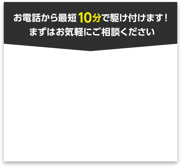 最短10分で現地に急行いたしますので、まずはお電話にてご相談ください。