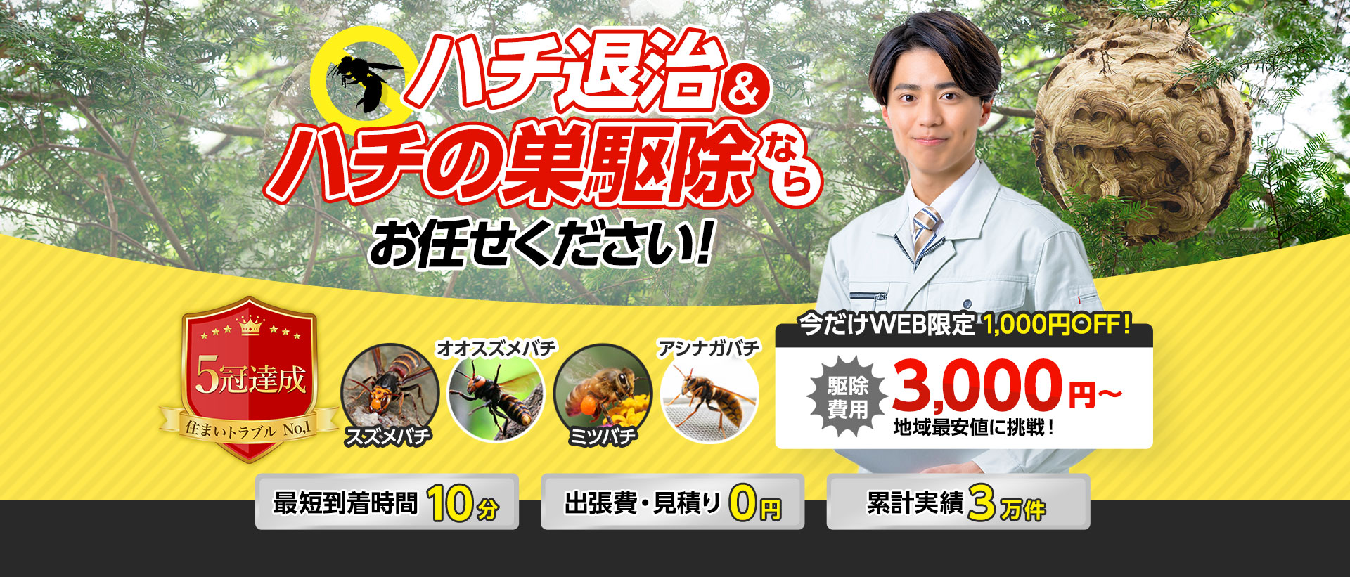 蜂駆除ホットラインならお見積り・出張費が無料です!